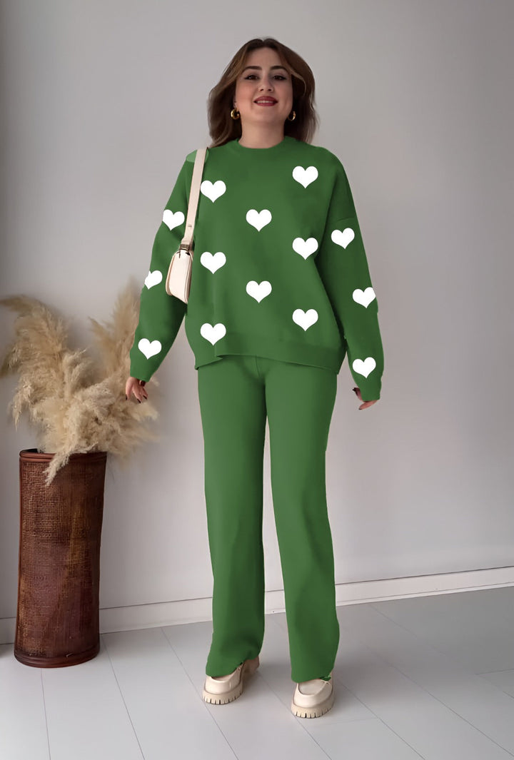 Heart Printed Sweat Shirts Trouser For Girls & Womens